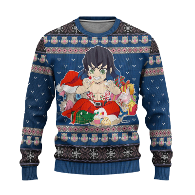 Inosuke Hashibira blue Demon Slayer Chibi Premium Ugly Christmas Sweater