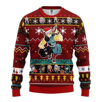 Tengen Uzui Red Demon Slayer Chibi Premium Ugly Christmas Sweater