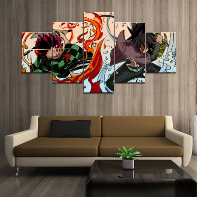 5 Piece Wall Art Canvas Prints Tomioka Giyuu Demon & Tanjiro Kamado Pictures